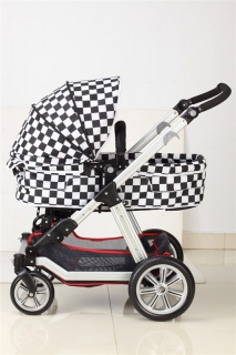 *EN1888 2003,AS/NZS 2088:2000 ,ASTM, 3C * Frame : Light Aluminium frame *Wheel :EVA foam ,Front 28.5cm , 360 rotating and fixed front wheel ,rear wheel 28.5cm , all wheels have shock absorption function with quick release system *Fabric :1680D *Adjustable parts :seat 3 position reversible , footrest and sponge handle *Removable parts:handgrip,canopy with small window *With two safty locks, “one-touch” double brakes function *Can assemble with carrycot and carseat and sleep bag *With big basket and 5-point safty belt